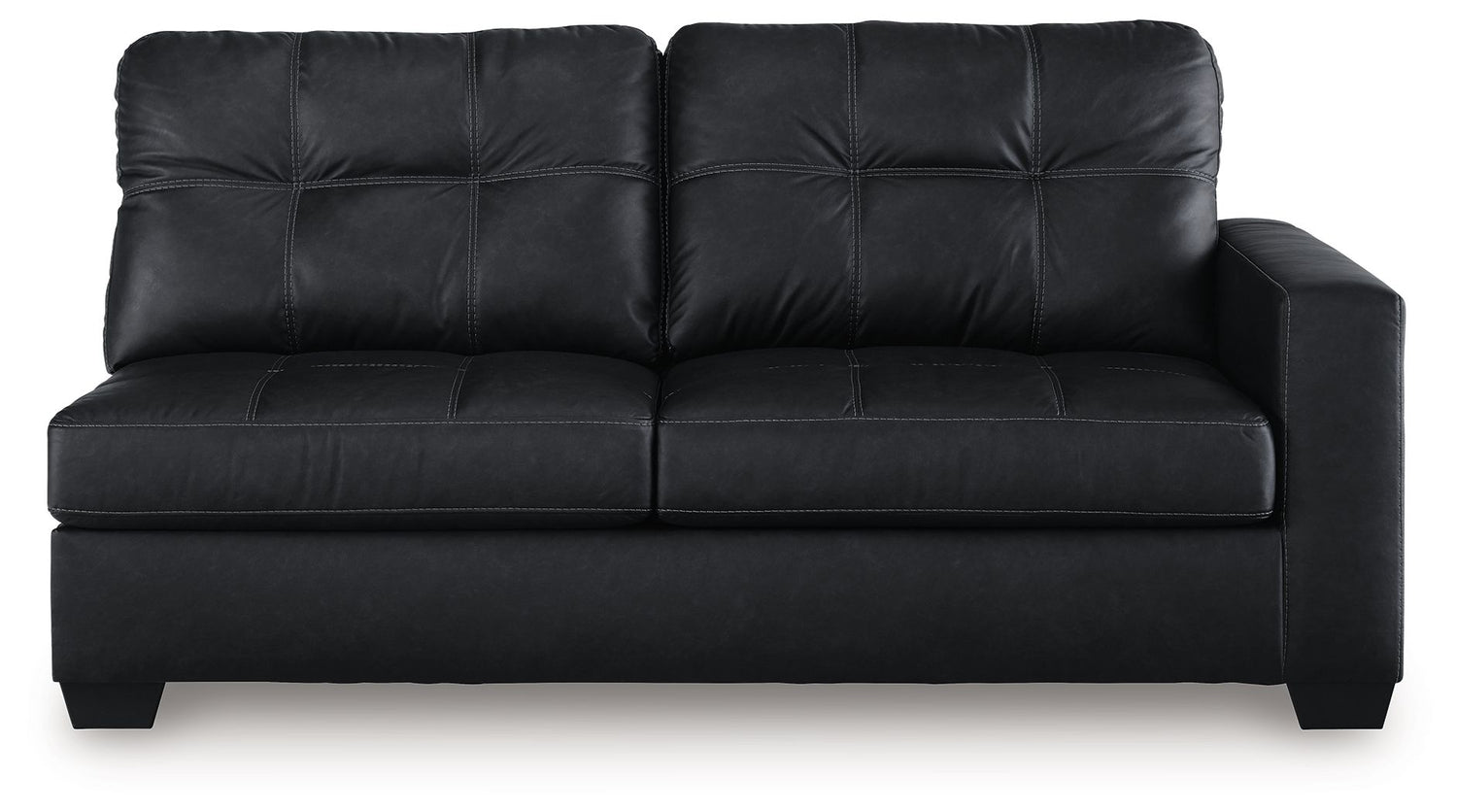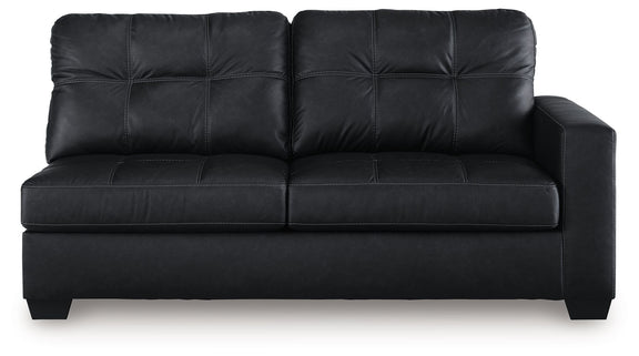 This right-arm facing sofa is made with faux leather upholstery. Pairs with other items in the series to make a sectional.