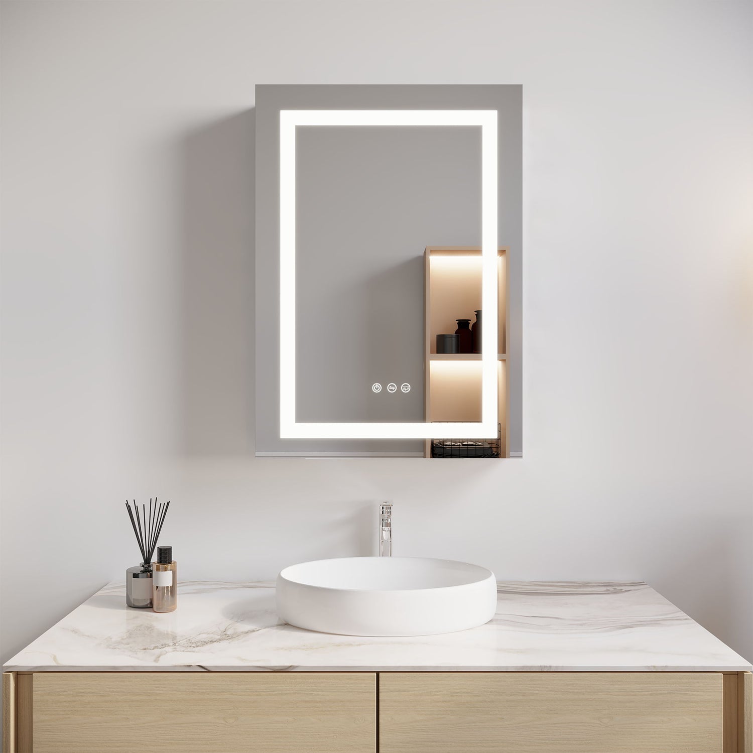 Bathroom Medicine Cabinet With LED Mirror, Anti-Fog, Waterproof, 3000K~6000K Single Door Lighted Bathroom Cabinet With Touch Swich