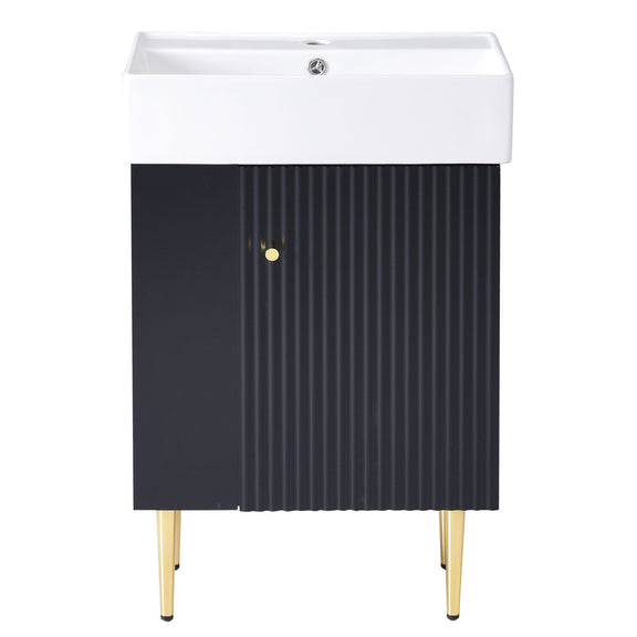 Bathroom Vanity, Combo Cabinet, Bathroom Storage Cabinet, Single Ceramic Sink, Right Side Storage - Black