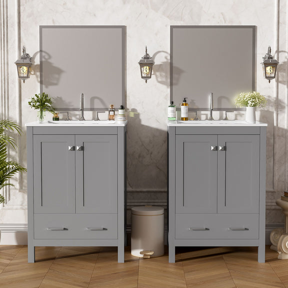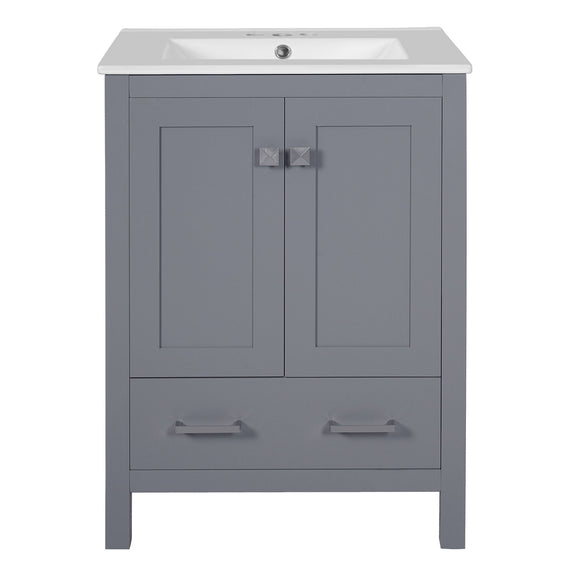 24" Bathroom Vanity With Integrated Undermount Sink, 2 Doors 1 Drawer, Soft Close Hinges, - Gray