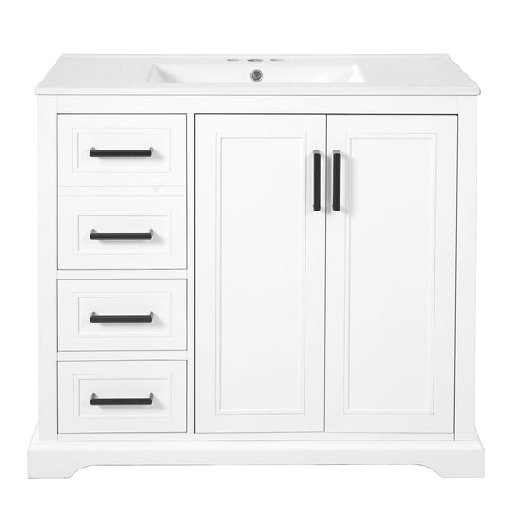 36" Bathroom Vanity With Sink, Soft Close Doors, Adjustable Shelf & 3 Drawers - White