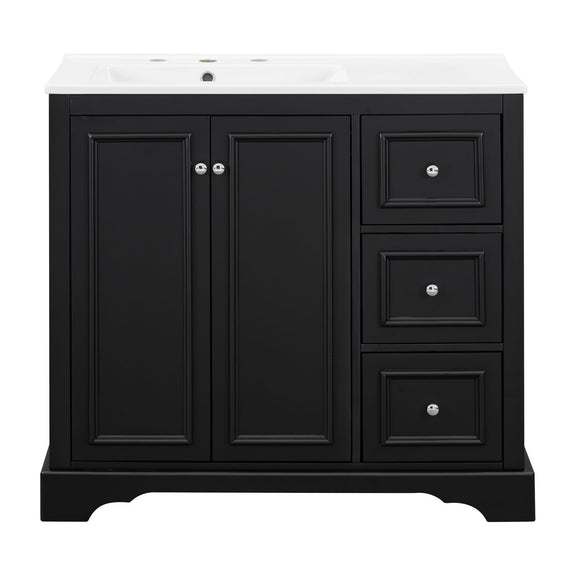 36'' Transitional Bathroom Vanity With Sink, Soft Close Doors, Adjustable U Shaped Shelf, 3 Drawers Including Divided Drawer - Black