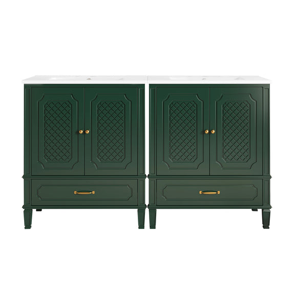 Double Bathroom Vanity With Dual Sinks With Door Organizers, 2 Drawers (Set of 2) - Green