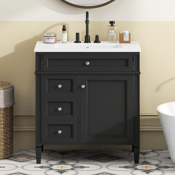 Bathroom Vanity With Top Sink, 3 Drawer Storage Cabinet, Rectangular Design - Black