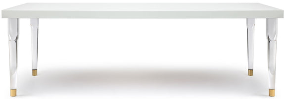 Add an alluring touch to your dining area with the Bethany dining table. This lacquer dining table features a high gloss finish, giving it a clean, elegant appearance just perfect for the minimalist or contemporary home. Crafted from a combination of wood and acrylic, this beautiful table is just the thing to bring a fresh new look to your dining area. Its clear, acrylic legs complement its white tabletop, making it the ideal piece for any dining area.