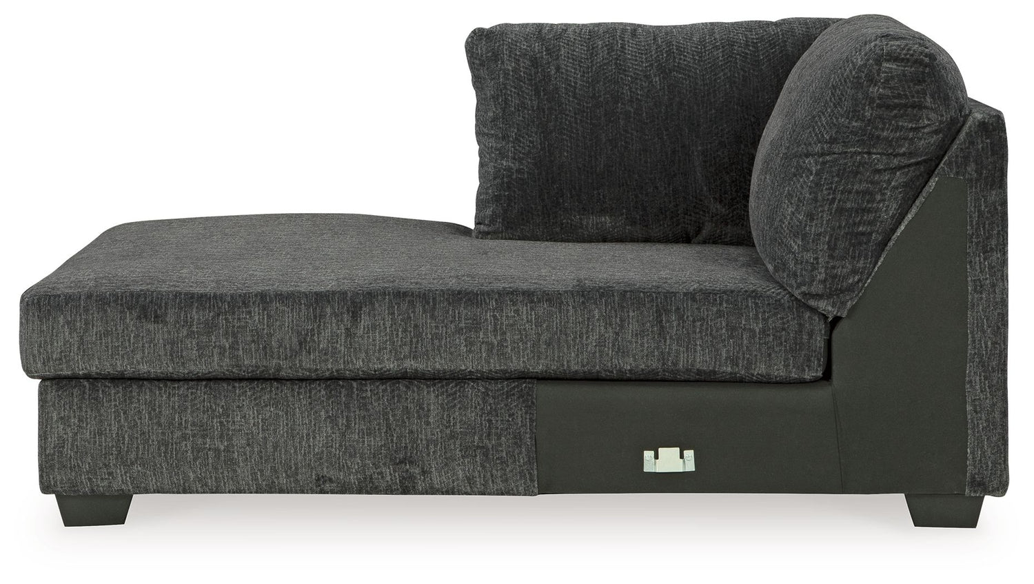 This left-arm facing corner chaise is made with polyester upholstery. Pairs with other items in the series to make a sectional, sold separately.