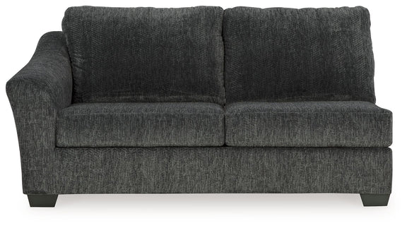 This left-arm facing sofa is made with polyester upholstery. Pairs with other items in the series to make a sectional, sold separately.
