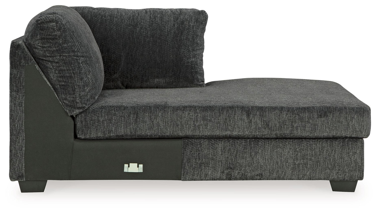 This right-arm facing corner chaise is made with polyester upholstery. Pairs with other items in the series to make a sectional, sold separately.