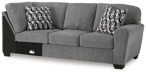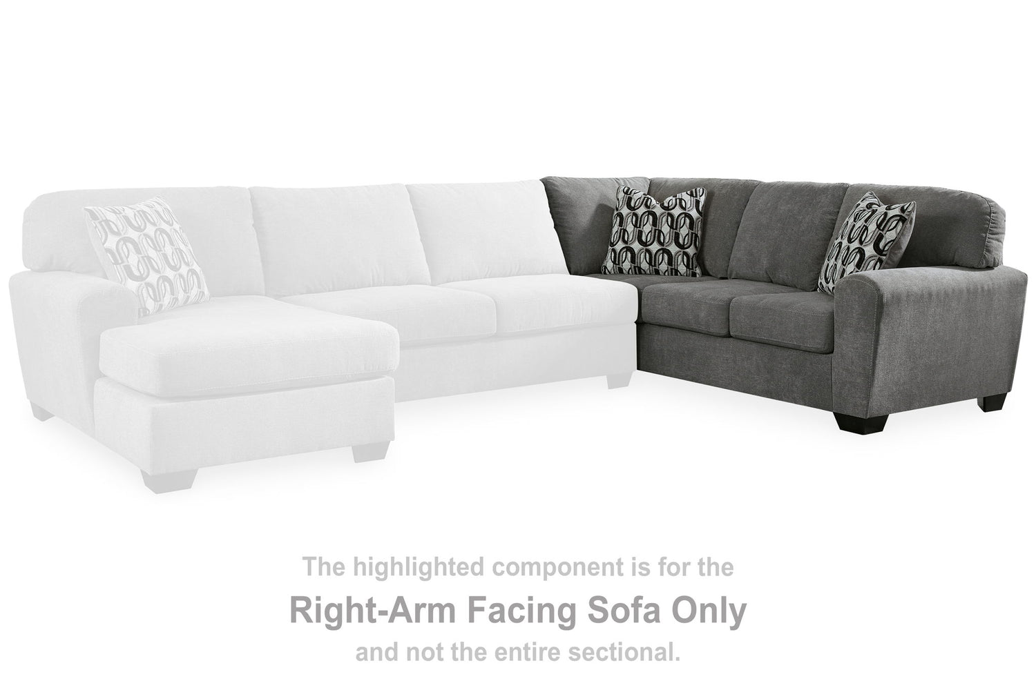 This right-arm facing sofa is made with polyester upholstery. Pairs with other items in the series to make a sectional.