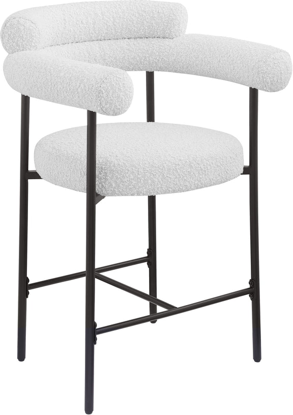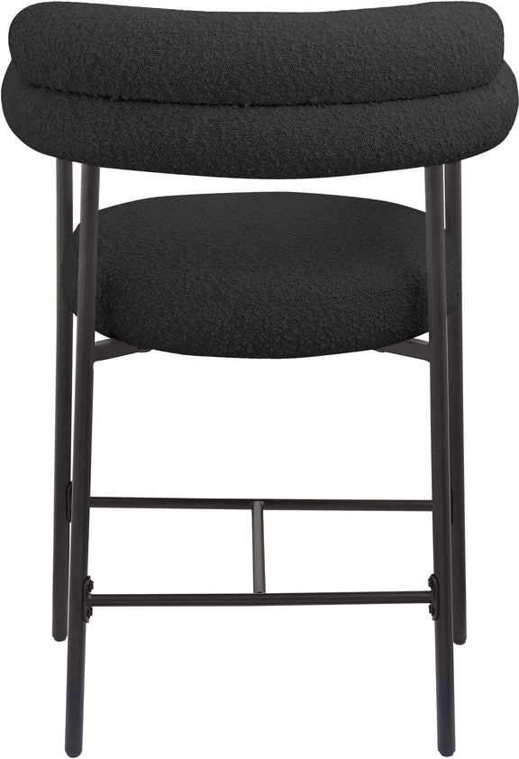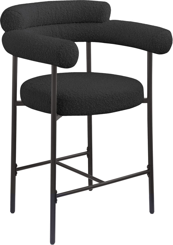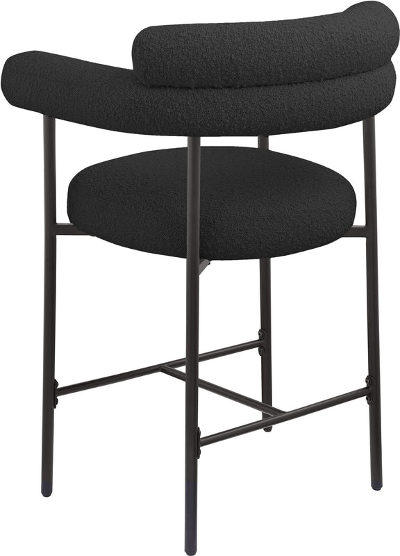 If what you crave is a home bar rescue or kitchen counter rehab, then this Blake counter stool in fabric is a good place to start. This beautiful stool has the creature comforts you're looking for to keep guests happy and coming back for more, including a rounded back for structural body support and plump cushions that make sitting and chatting more comfortable. A black matte iron metal frame is sturdy and durable, while the rich grey boucle fabric adds a chic touch.