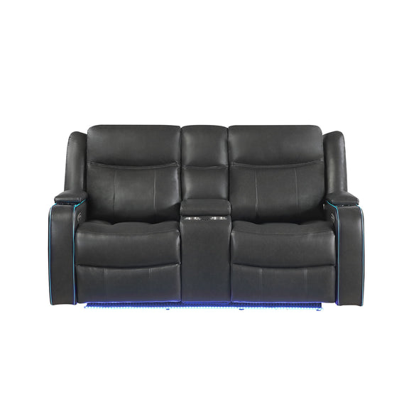 Blanca - Power Console Reclining Loveseat With LED Lights, Power Headrest And Speakers - Charcoal