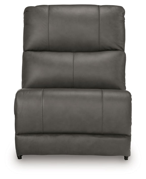 This armless chair is made with a combination of 100% top grain leather and faux leather upholstery. Pairs with other items in the series to make a sectional.