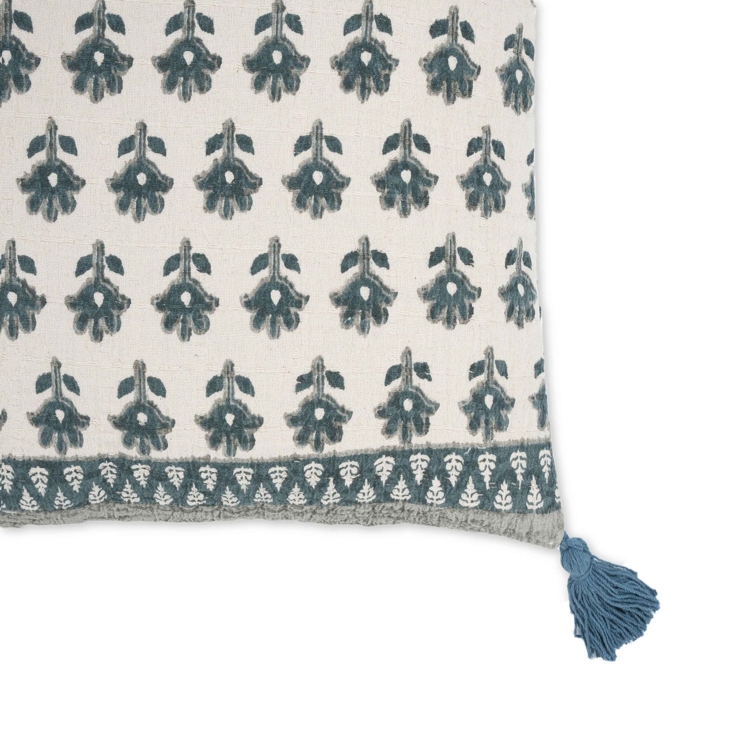 The Blossom Printed Cotton Tassel Accent Cushion brings artisanal charm to your space with its hand block-printed pattern, each design crafted with care. Filled with plush synthetic down, this cushion offers both weight and comfort, making it as cozy as it is beautiful. Delicate tassels complete the look, making Blossom the perfect accent to elevate any room.