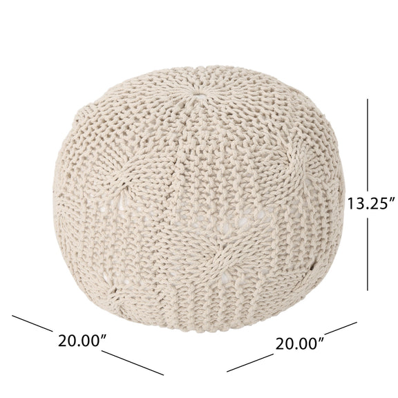 Bordeaux - Knitted Cotton Round Pouf Ottoman Floor Cushion - Beige