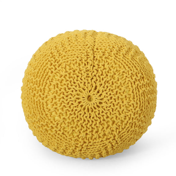 Bordeaux - Knitted Cotton Round Pouf, Versatile Ottoman Or Floor Cushion - Yellow