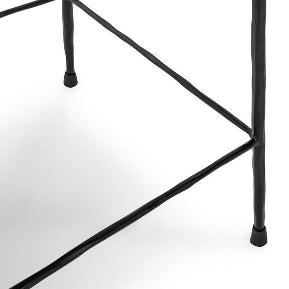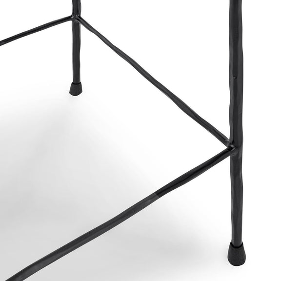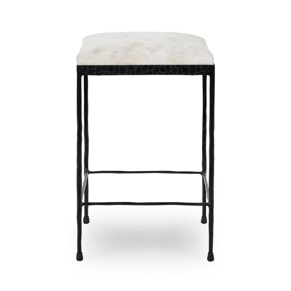 Expertly crafted with a hammered iron frame in dark bronze, the Bose Stool features a luxurious hair-on-hide leather seat. Its unique texture, sturdy sidebars, and floor protectors make it a durable and stylish choice for kitchen islands.