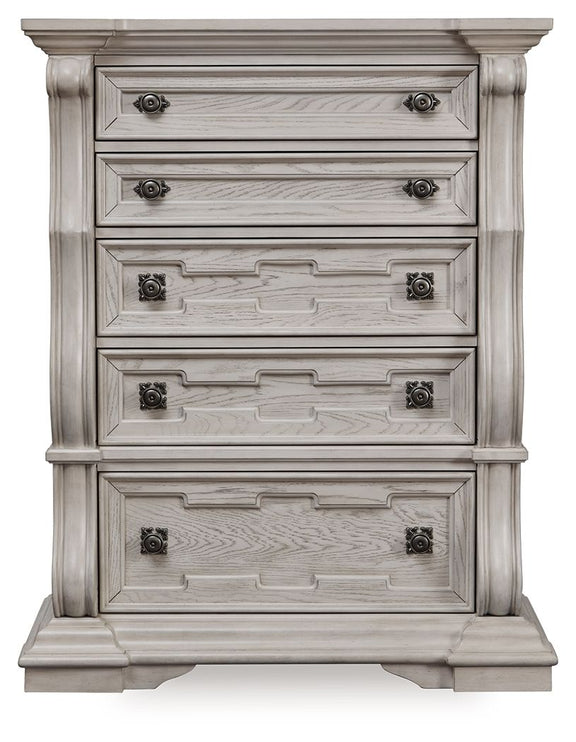 - 5 smooth-gliding drawers with fully finished interiors, English dovetail construction and heavy-duty ball-bearing side glides (top drawer felt lined)