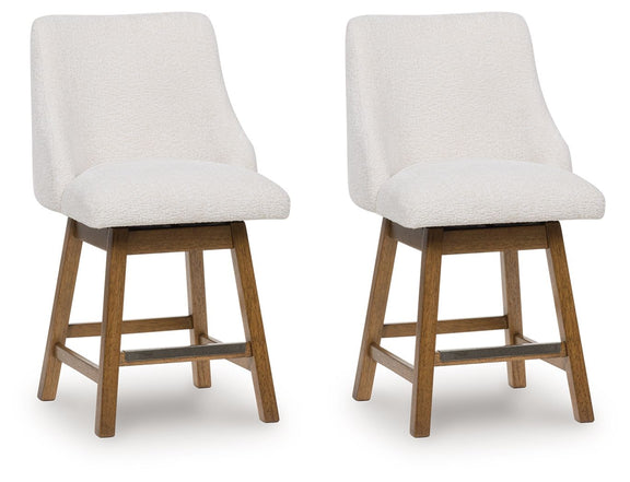 Cabalynn - Upholstered Swivel Barstool (Set of 2) - Oatmeal / Light Brown