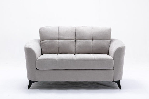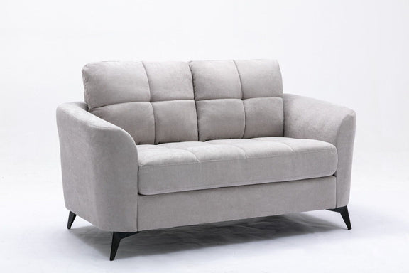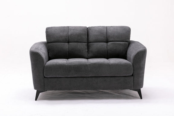 - The Callie loveseat provides world-class comfort and style with a tufted cushion design and black metal legs. A great look for formal gatherings yet perfect for the family as well. The comfortable fabric will keep guests satisfied and looking elegant while the metal legs will blend luxuriously into a wide selection of rugs.