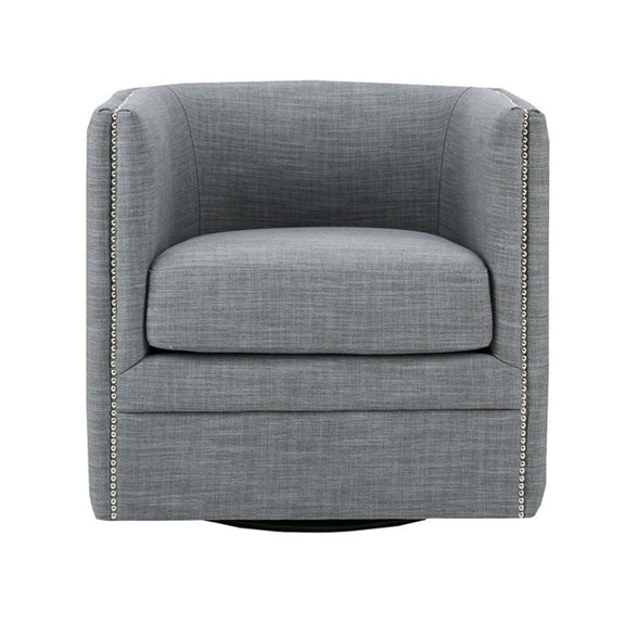 Capstone - Swivel Barrel Chair With Nailhead Accents And Button Tufting - Gray