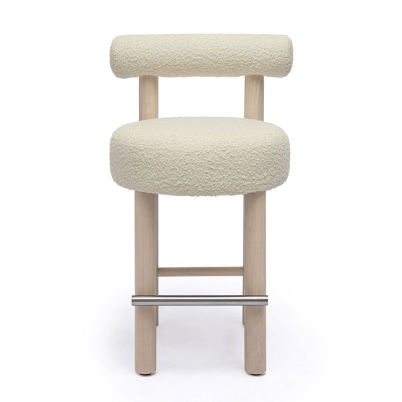 Carmel - Boucle And Solid Wood Counter Stool - Cream