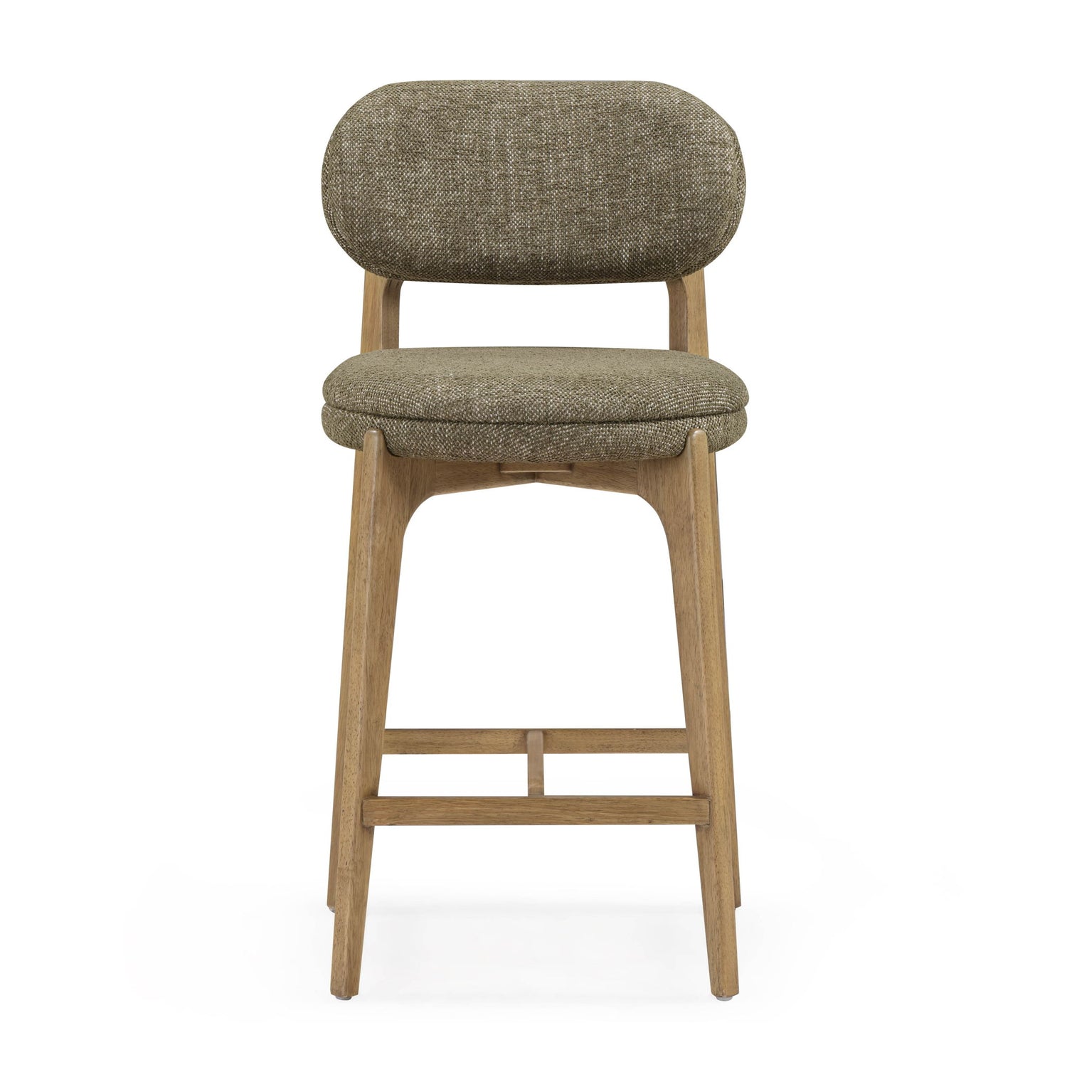 The Carnation Dining Chair and Counter Stool bring a fresh take on mid-century style, pairing sculptural lines with contemporary fabrics. Offered in cream or green textured performance weave or smooth cream vegan leather, each rests on a solid wood frame built for lasting comfort, resisting spills and wear while adding timeless sophistication to your dining space.