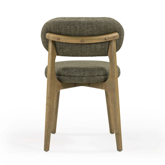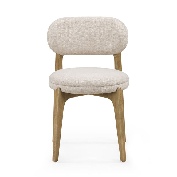 The Carnation Dining Chair and Counter Stool bring a fresh take on mid-century style, pairing sculptural lines with contemporary fabrics. Offered in cream or green textured performance weave or smooth cream vegan leather, each rests on a solid wood frame built for lasting comfort, resisting spills and wear while adding timeless sophistication to your dining space.