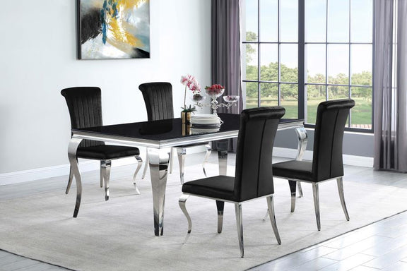 Carone - 5 Piece Rectangular Glass Dining Set - Chrome And Black
