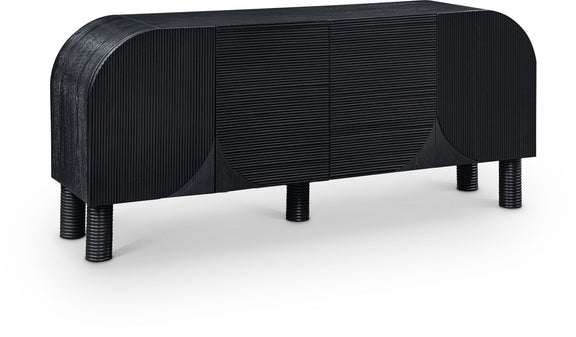 Enhance your dining room with the Casablanca Sideboard Buffet. Crafted with a rich finish and ash wood veneer construction, it exudes timeless elegance with its art deco design. Concealed behind its doors lies ample storage for your formal dinnerware, flatware, and linens, keeping them organized and easily accessible. Designed for versatility and easy storage, this piece gives you a stylish surface for displaying dishes or serving food during special occasions. Add valuable functionality and beauty to your dining area with this sleek and handsome sideboard buffet.