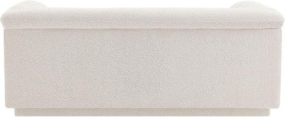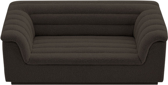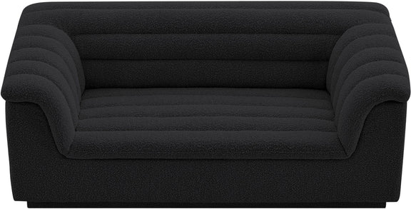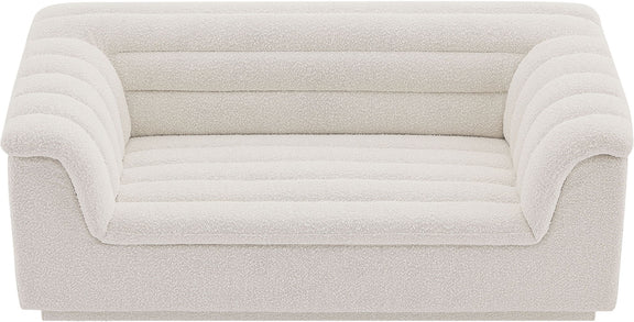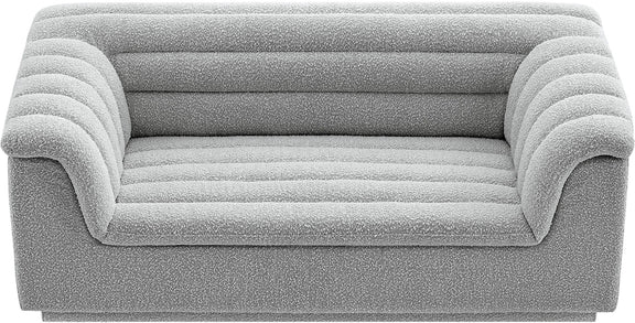 Give your room a much-needed rehab when you bring home this Cascade boucle fabric loveseat. The elegantly attention-grabbing design features a modern profile with curved arms deep horizontal channel tufting, so it wows from all angles. Upholstered in rich boucle fabric, this seat quickly becomes everyone's favorite spot for curling up with a good book or smart device. Thick foam padding ensures a cozy, body-hugging experience. while you watch TV or just relax.