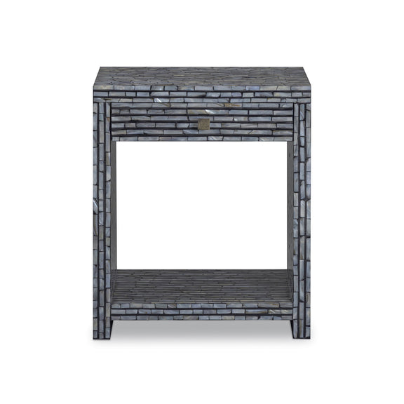 Add a touch of charm to your bedroom with the Cassis Nightstand. Hand-placed mother-of-pearl shells create luminous motifs that shimmer against a black finish, making this artful piece both beautiful and functional beside your bed.