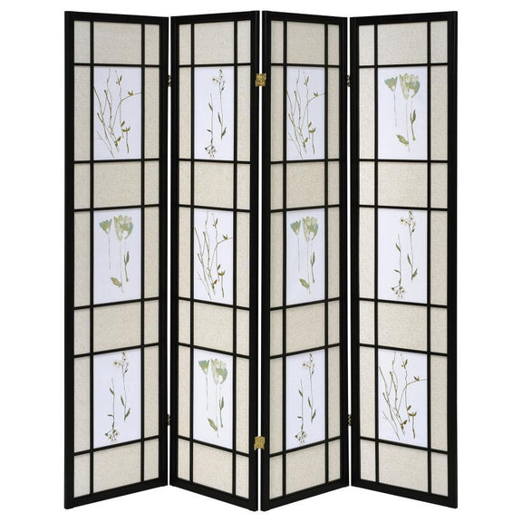 Catabella - 4-Panel Room Divider Folding Shoji Screen Floral - Black