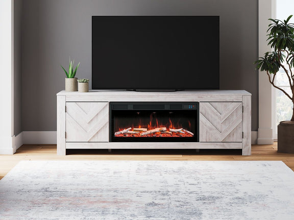 Cayboni - LG TV Stand With Fireplace Option - Whitewash