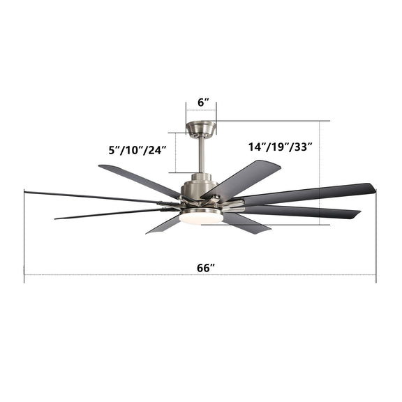 Ceiling Fan With Dimmable LED Light, 8 Blades, Reversible DC Motor, Remote Control - Nickel