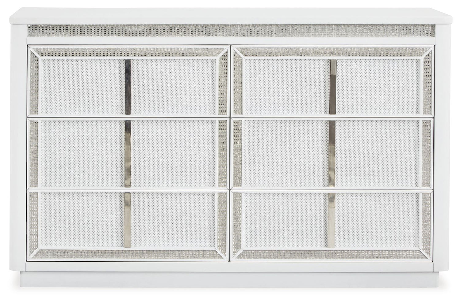 - Drawers with rhinestone frames; textured laminate drawer fronts