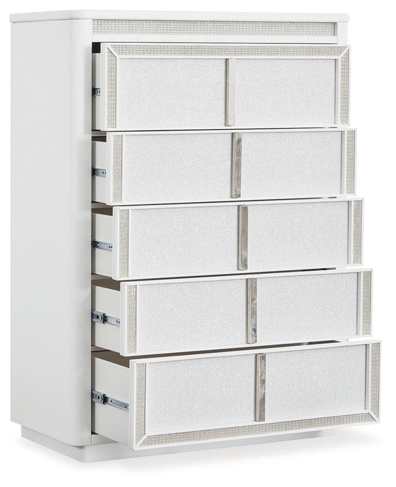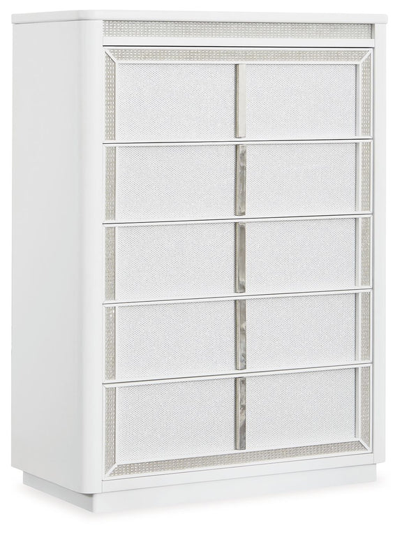 - 5 drawers with fully finished interior, dovetail construction and heavy duty ball-bearing side glides
