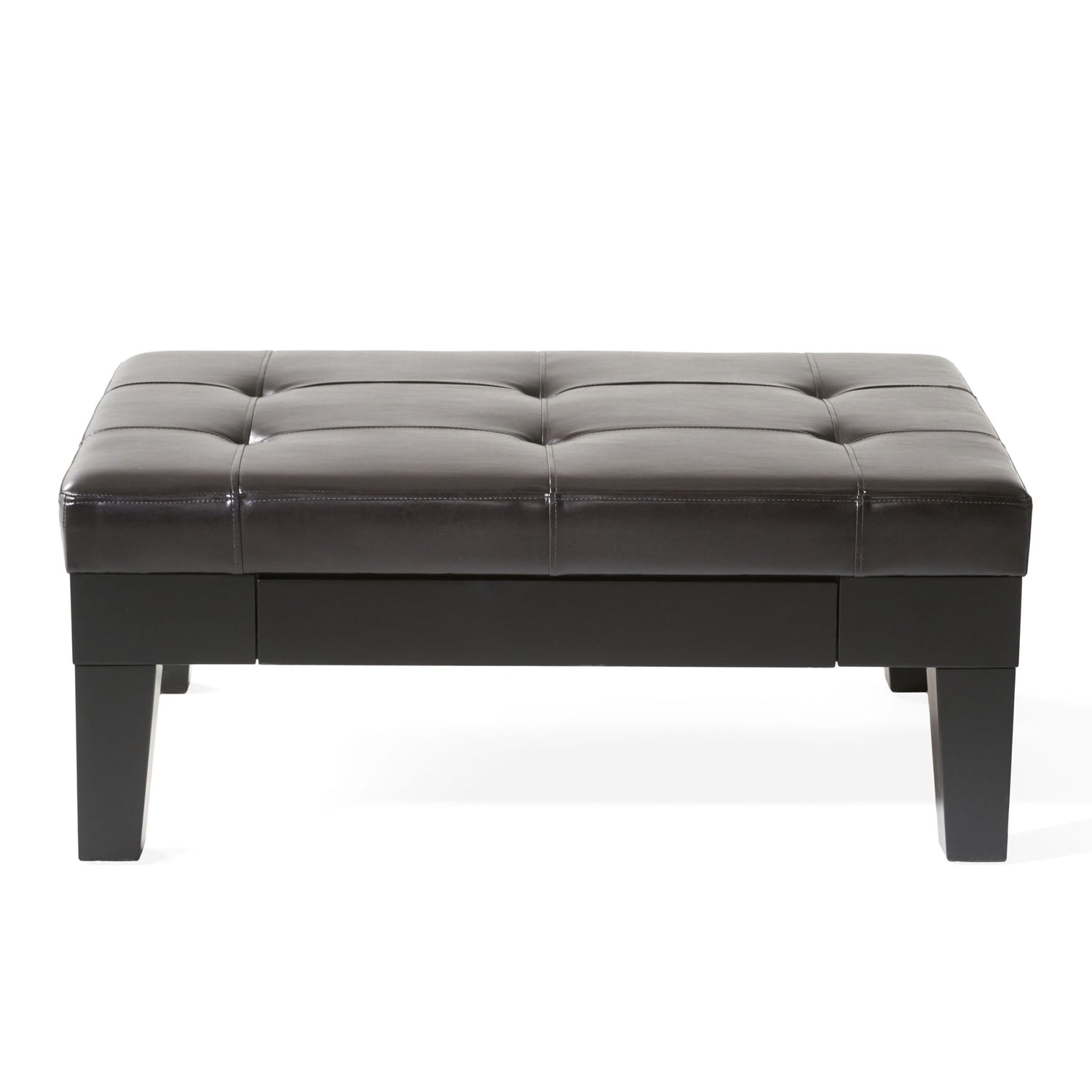 Chatham - Ottoman With Drawer Leather Storage Solution - Dark Coffee