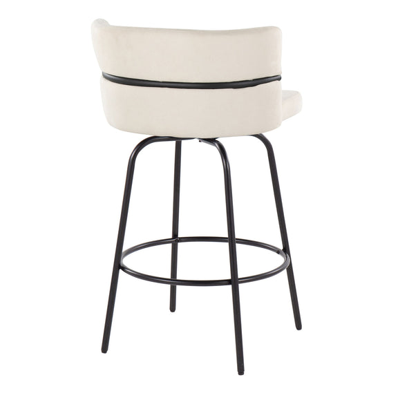 Cinch - Contemporary Fixed Height Counter Stool With Swivel And Round Footrest (Set of 2) - Black / Cream