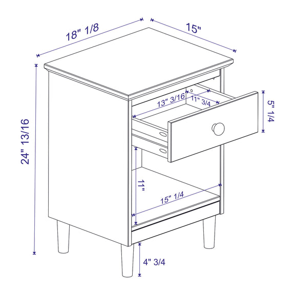 Classic 1 Drawer Solid Wood Nightstand With Cubby - Caramel