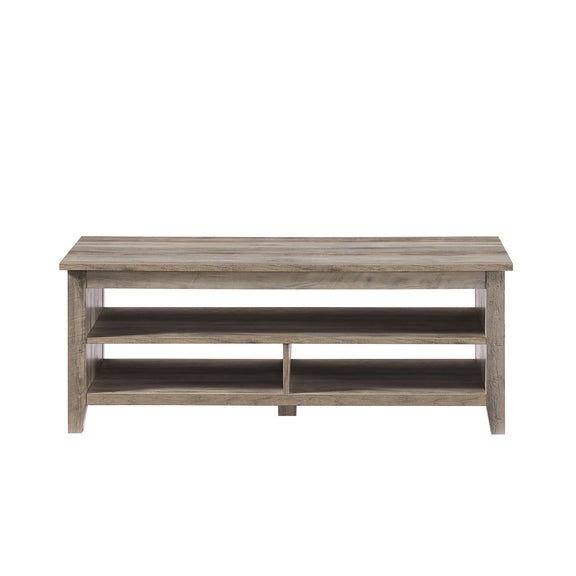 Coastal Grooved Panel Coffee Table With Lower Shelf - Gray Wash
