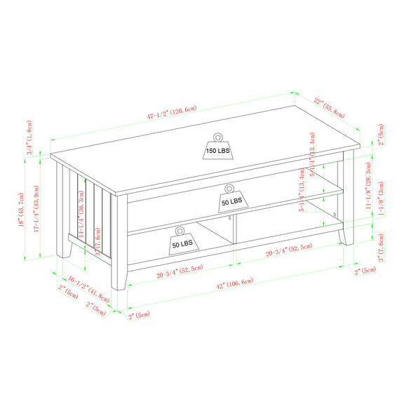 47.5"W x 22.0"D x 18.0"H - 62.0 lb