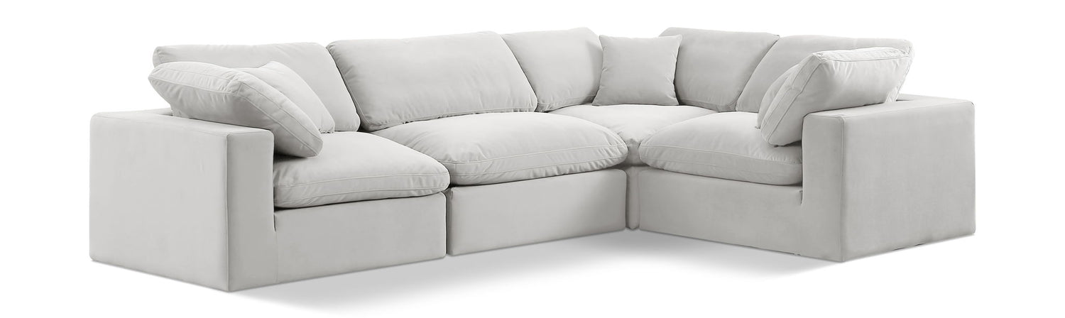 Comfy - 4 Piece Velvet Modular Sectional - White