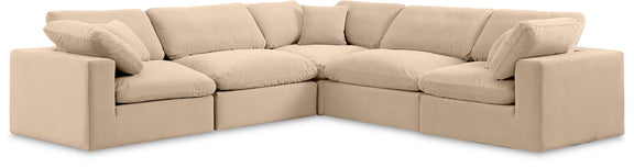 Comfy - 5 Piece Velvet Modular Corner Sectional - Light Beige