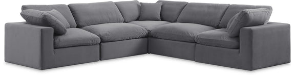 Comfy - 5 Piece Velvet Modular Corner Sectional - Dark Gray
