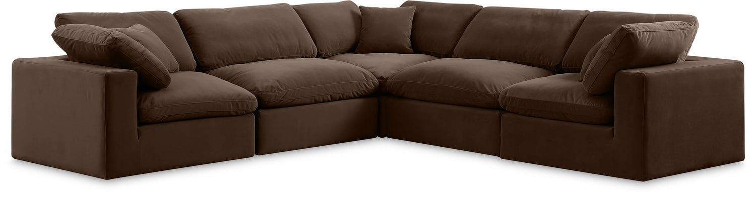 Comfy - 5 Piece Velvet Modular Corner Sectional - Dark Brown