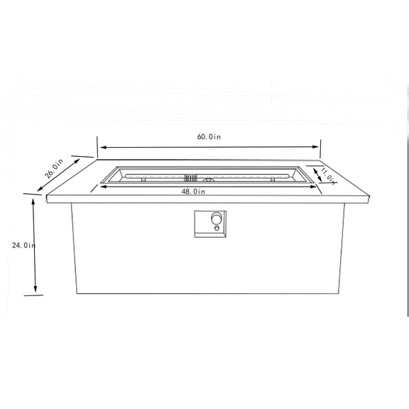 Concrete 60" Rectangular Propane Gas Fire Pit Table With 60000 Btu For Outdoor Spaces - Light Gray