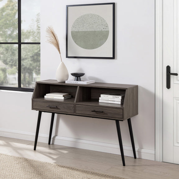 Contemporary 2 Drawer Angled Entry Table - Slate Gray