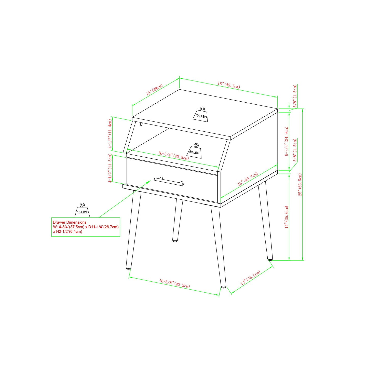 18.0"W x 15.0"D x 25.0"H - 28.0 lb