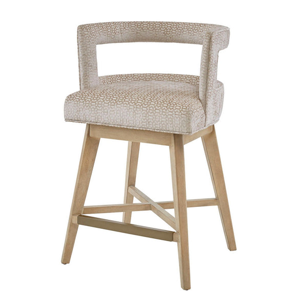 Contemporary Design Swivel Counter Stool With Low Back Support Polyester And Solid Wood - Cream
