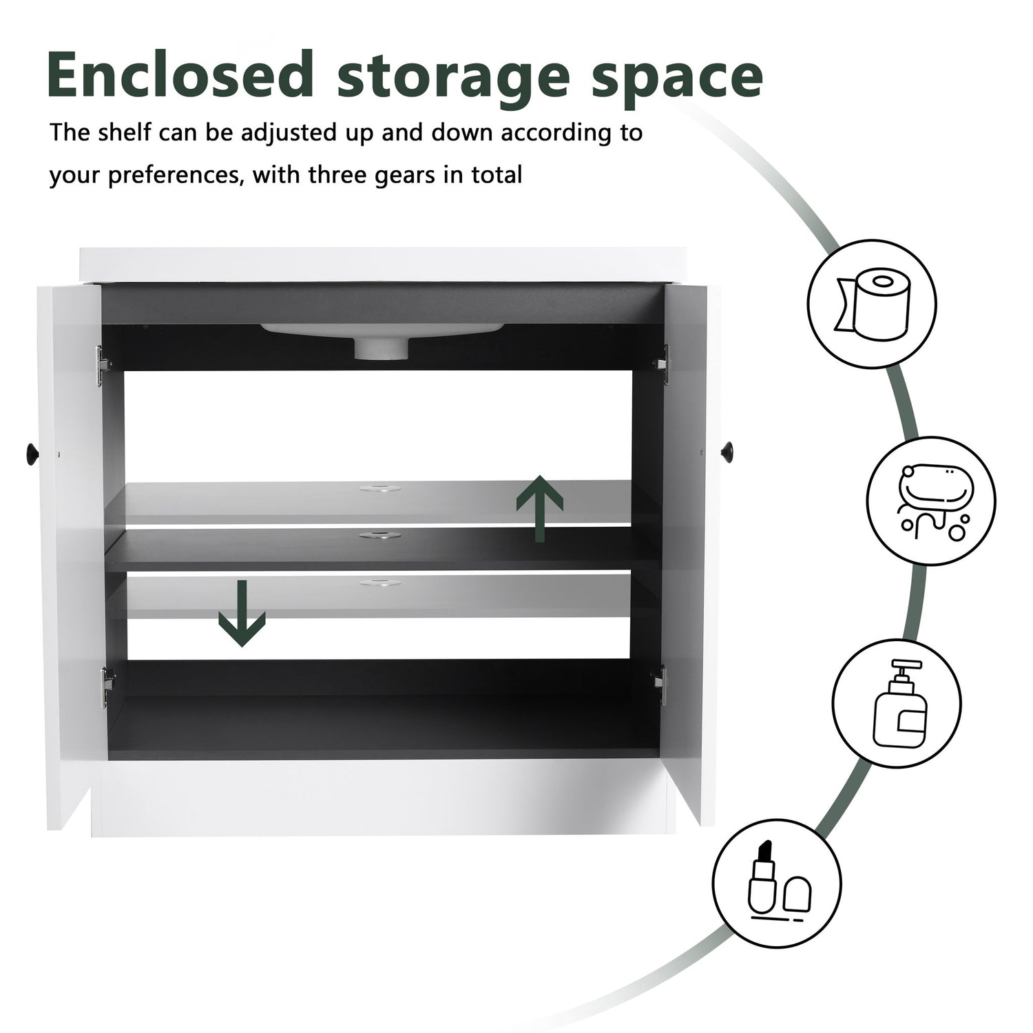 Modern Freestanding Bathroom Vanity With White Resin Sink & 3 Soft Close Cabinet Doors - Dark Green